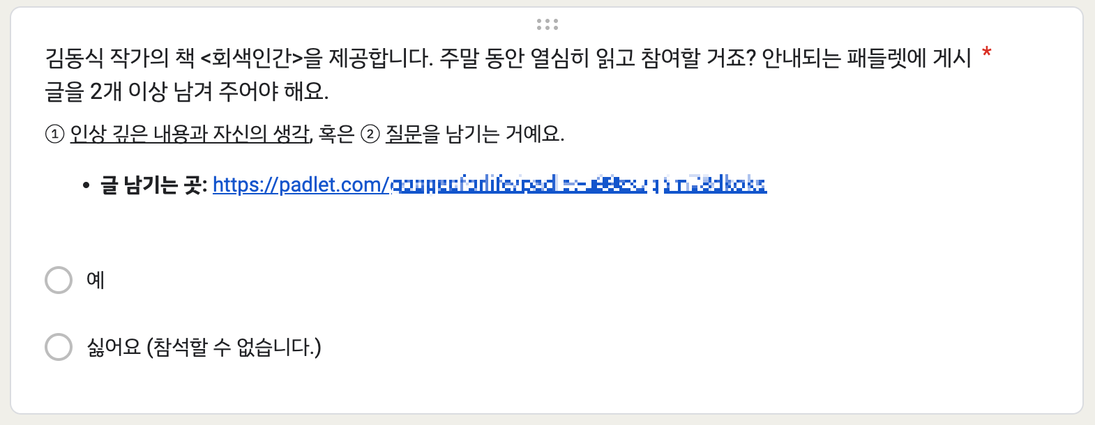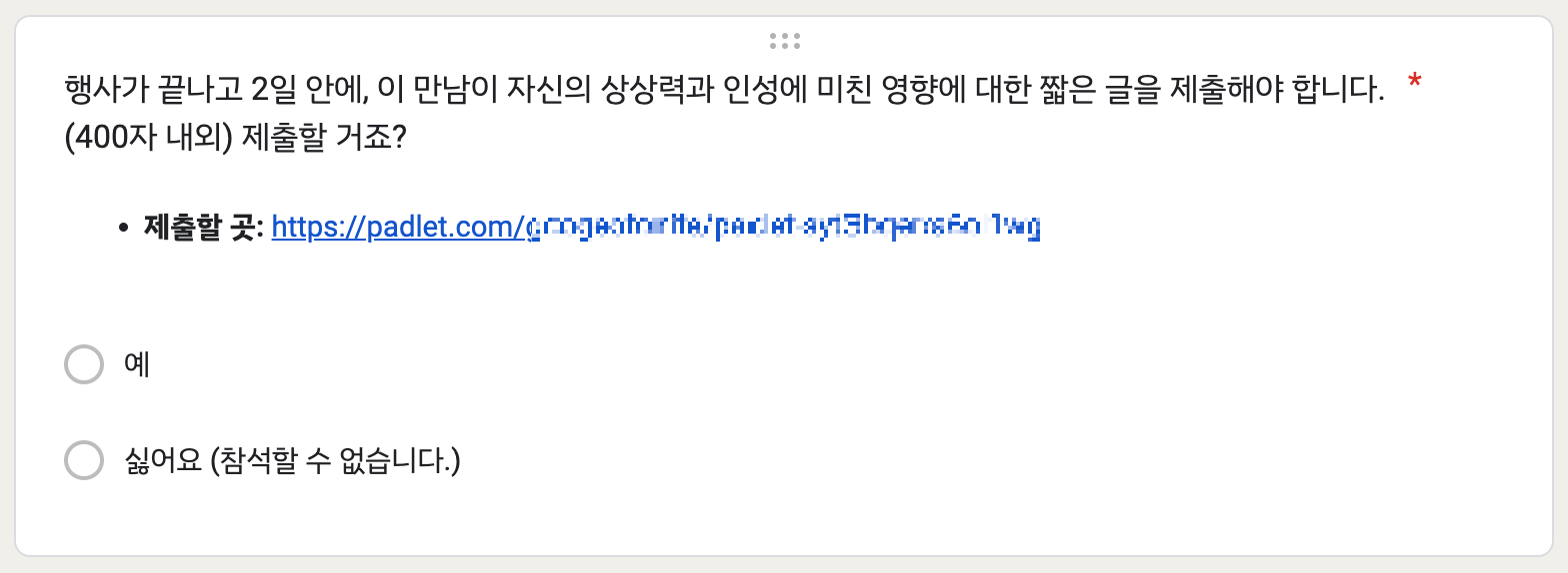 ๋จผ์ , ๊ตฌ๊ธ ์ค๋ฌธ์ ํตํด ์ฐธ๊ฐ ์ ์ฒญ์ ๋ฐ์์ต๋๋ค.